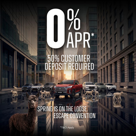 Offer available on all KGM models ordered by 30th June 2026. T&Cs apply. Participating retailers only. Finance through CA Auto Finance UK Ltd, 250 Bath Rd. Slough, SL1 4DX. Other HP or PCP finance offers are available with regular monthly repayments. Offer may be amended or withdrawn at any time. KGM UK Motors Ltd is a credit broker not lender.